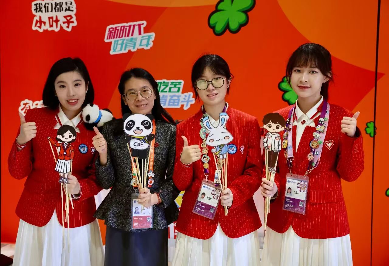 美术学院黎善洁、郭奕菲和邓艺带着一颗“用非遗讲进博故事”的初心,在当好进博会志愿者之余,编排了志愿主题皮影小剧目《“小叶子”的进博闯关记》,设计了“小叶子”“进宝”“加油兔”的皮影形象,为传播非遗贡献一份青春力量。 青春进博 不说再见 上海师大“小叶子”是进博盛会上无数青春篇章的缩影,他们带着各自的热爱与坚守,把青春热忱洒在“四叶草”的每个角落,共同书写着开放包容、命运与共的青春答卷。