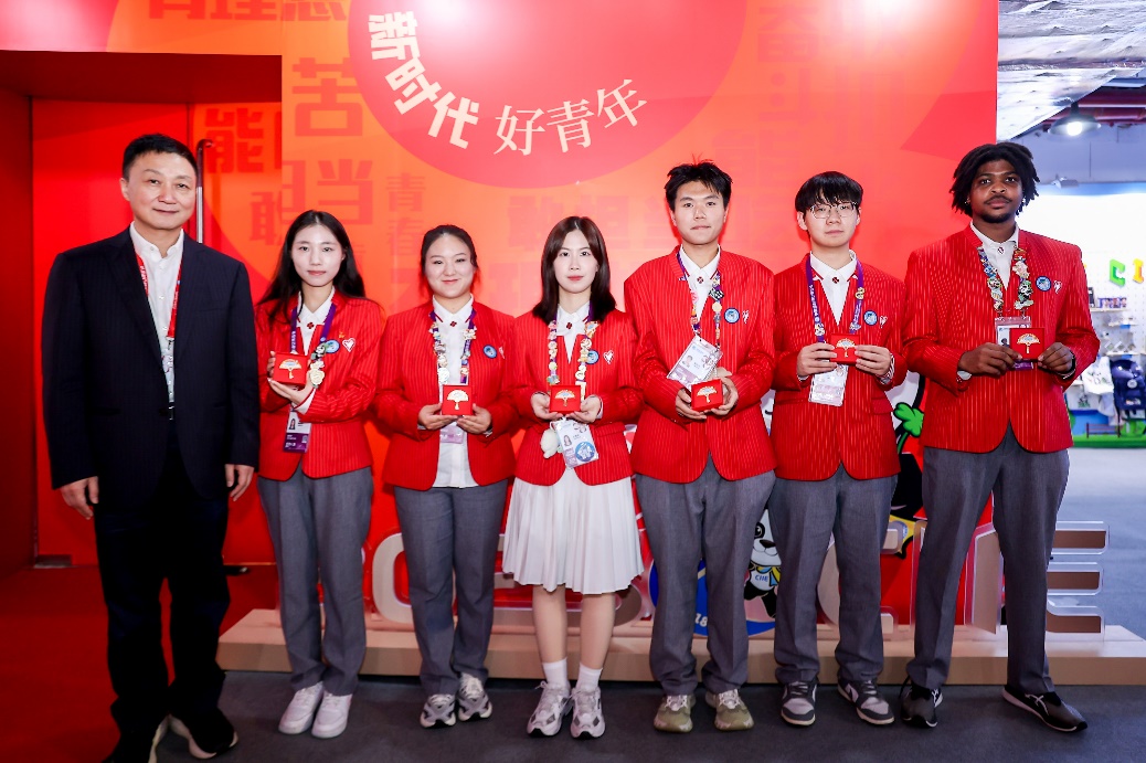 在志愿者之家,林在勇以“‘青春之我’融入‘国之大我’,在进博盛会中挺膺担当”为主题,讲授了一堂深刻生动的微党课。结合党的二十届四中全会“组织动员青年在高质量发展一线勇当先锋”的要求,他勉励同学们心有所信坚定理想,延续“扎根”精神;学有所悟苦练本领,诠释青年担当;行有所成赓续力量,传递志愿与开放精神。慰问现场,林书记为志愿者代表颁发了本次进博会官方限量纪念徽章。