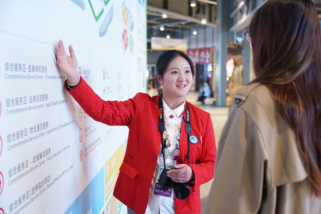 影视传媒学院的赵从杨,来自贵州大山的彝族女孩,作为进博会志愿者,担任媒体组负责人,为进博会宣传工作提供支持服务,保障媒体采访和重点活动报道工作。她以少数民族志愿者的身份,在进博会上讲好进博会开放、包容的故事,当好国际交流的青春使者。 在进博会的场馆中,有卸甲未卸志的退伍兵,也有奔赴山海的西部计划志愿者。当志愿红遇上青年志,让初心在服务岗位上续写荣光。