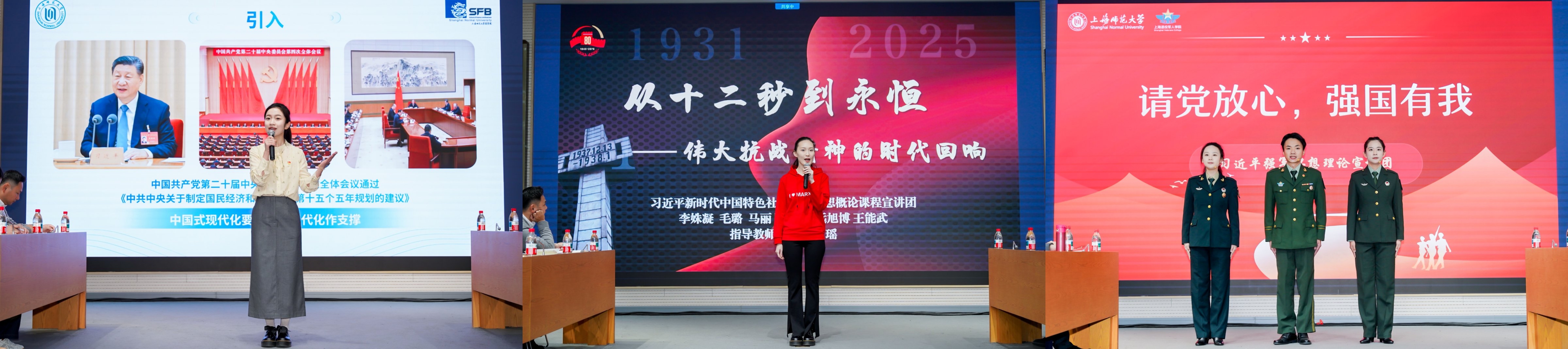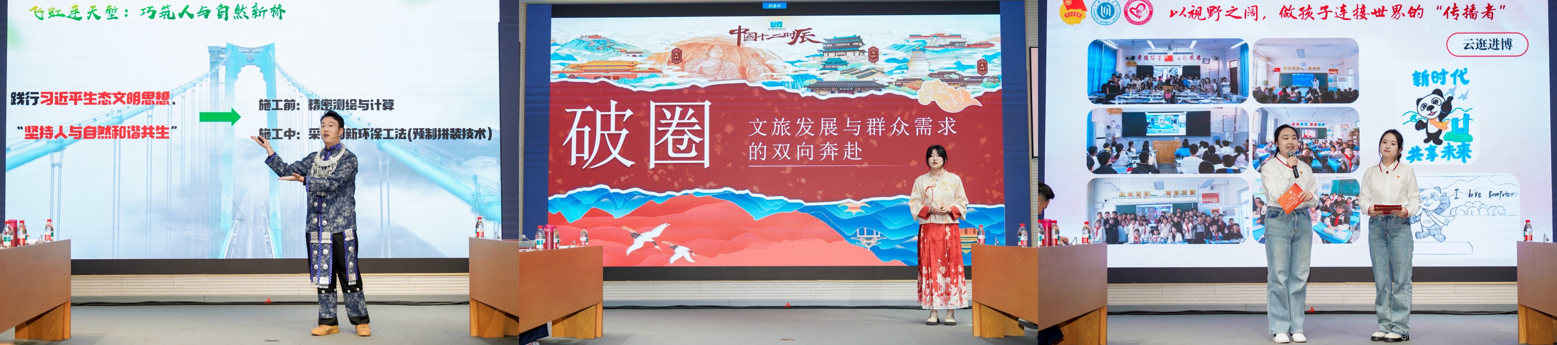 经过评委现场打分评选,习近平生态文明思想专论课程宣讲团课程《峡谷藏秀·布依风情绘生态新篇》、习近平新时代中国特色社会主义思想概论课程宣讲团课程《从十二秒到永恒——伟大抗战精神的时代回响》荣获一等奖。“弘扬教育家精神”个论课程宣讲团课程《师者何为?灯火长明照初心——从廖世承教育情怀看师者使命担当》、习近平强军思想专论课程宣讲团课程《以青春赴使命,以强军护强国》、党的青年工作个论课程宣讲团课程《以青春之我,赴西部之约——以教育微光筑梦强国》荣获二等奖。习近平文化思想专论课程宣讲团课程《文旅“破圈”的核心密码:让文化服务贴地而行》、习近平经济思想专论课程宣讲团课程《从“大国重器”到“大国工匠”:让青年的蓝天之梦照进中国经济的时代蓝图》、习近平法治思想专论课程宣讲团课程《城市心脏的“小法庭”,守护黄浦江畔的“大民生”》以及习近平外交思想专论课程宣讲团课程《进博行动:构建人类命运共同体的中国实践》荣获三等奖。