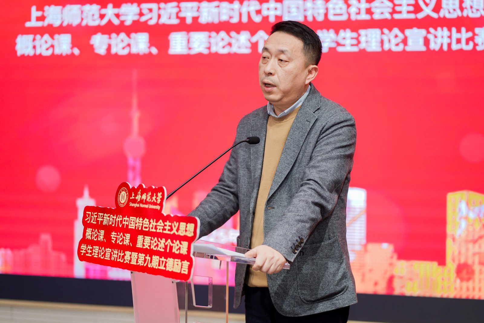 11月26日下午,学校举行习近平新时代中国特色社会主义思想概论课、专论课、重要论述个论课学生理论宣讲比赛。校党委副书记、副校长朱惠军,华东师大一附中副校长、正高级教师、我校1994级思想政治教育专业优秀校友陈明青,上海外国语大学党委学生工作部部长王一林,马克思主义学院教授、博士生导师石书臣,相关职能部门负责人以及宣讲团师生代表参加。 决赛现场,各宣讲团参赛代表以情景短剧、故事讲述、模拟课堂等多元形式,围绕经济发展、强军思想、法治民生等九大主题,从C919大飞机的青年力量到西部支教的青春坚守,从花江大峡谷的生态实践到文旅融合的“破圈”密码,用“青言青语”将党的创新理论转化为生动故事,诠释思想内涵、传递青春力量。