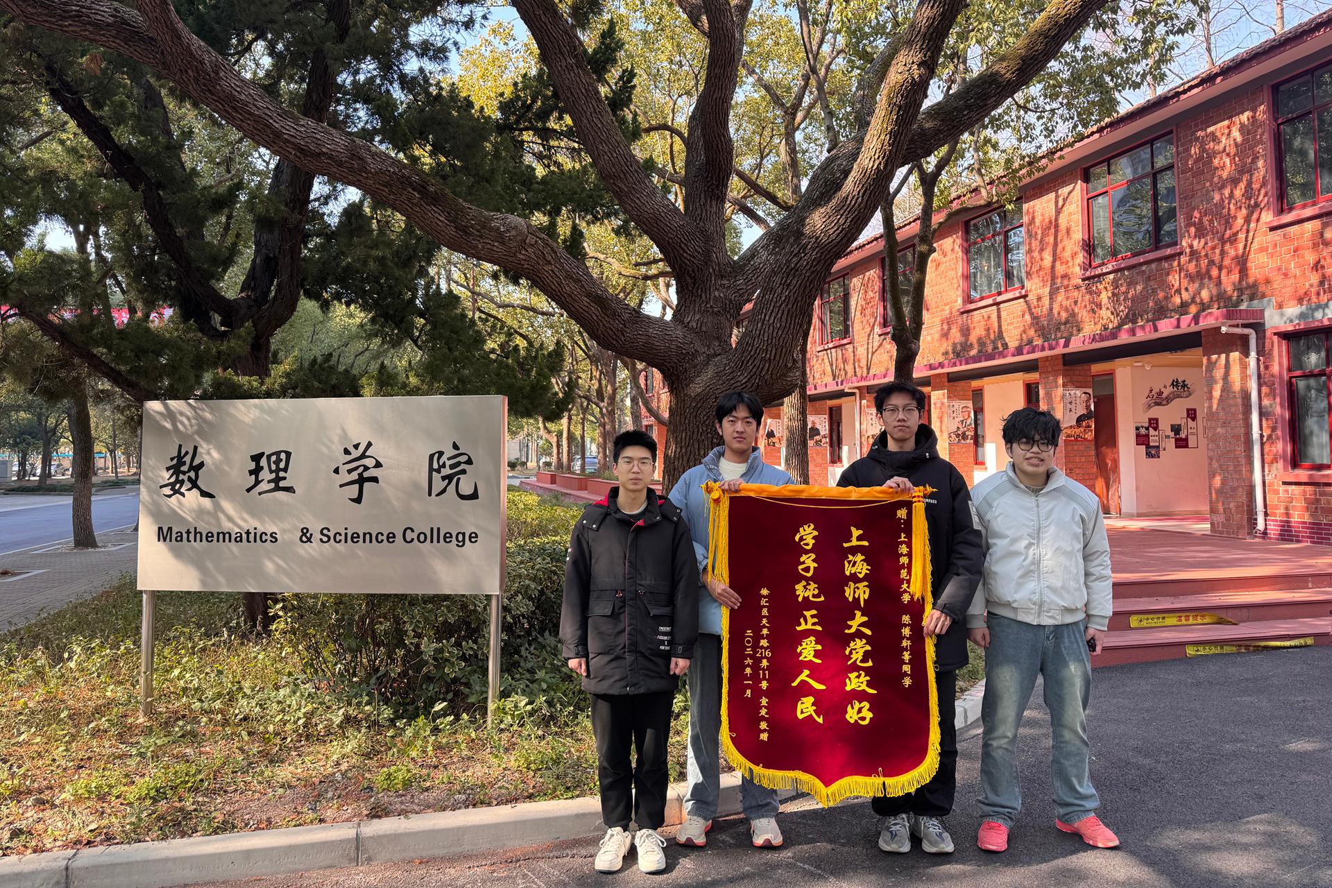 1月21日,这位老人专程来到学校,送上锦旗和手写的感谢信,向四位救助他的数理学子表达最深切的感激之情。他在感谢信中写道:“我是一名年过八旬的老年人。去年12月31日晚上七点走在淮海中路,不慎右脚被水泥凹坑绊倒,头脸砸地,血流不止,幸遇贵校陈博轩等四名品德高尚的大学生及时扶起,见我眼眶流血,立即打电话叫来救护车,使我万分感动。”老人还激动地表示:“感谢贵校培养了满腔热情爱人民的纯正学子,敢于一事当先,敢于救死扶伤的忘我精神永远令我万分感动!” 四位同学的见义勇为,不仅彰显了当代青年高尚的个人品德与责任担当,更印证了我校长期以来深耕学生品德教育、注重综合素质培养的显著成效。他们用实际行动践行了“学为人师、行为世范”的师大精神,展现了新时代大学生的社会责任感与人文关怀。这份温暖的善举,同时激励着更多青年学子在日常生活中主动践行社会责任,传递人间温情与正能量。 (供稿、摄影:数理学院) |