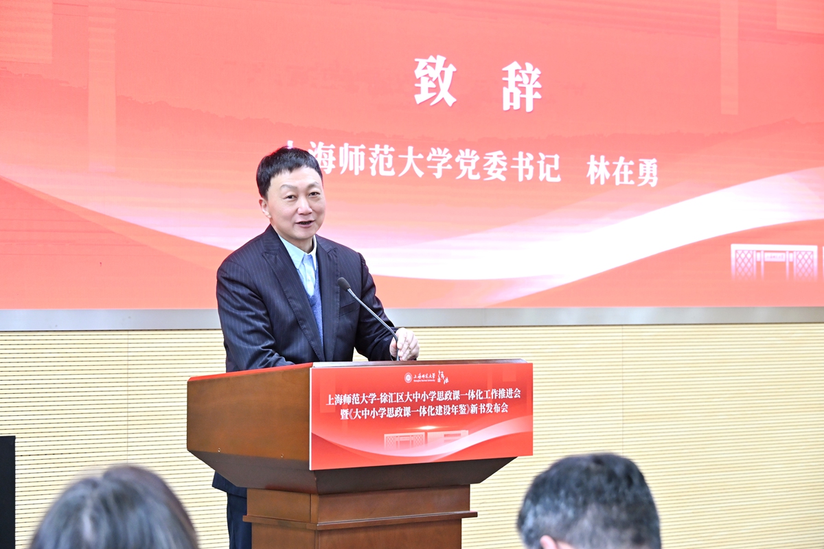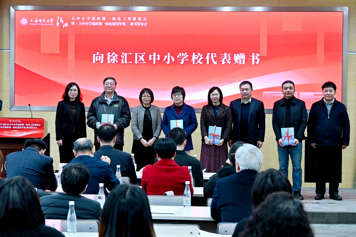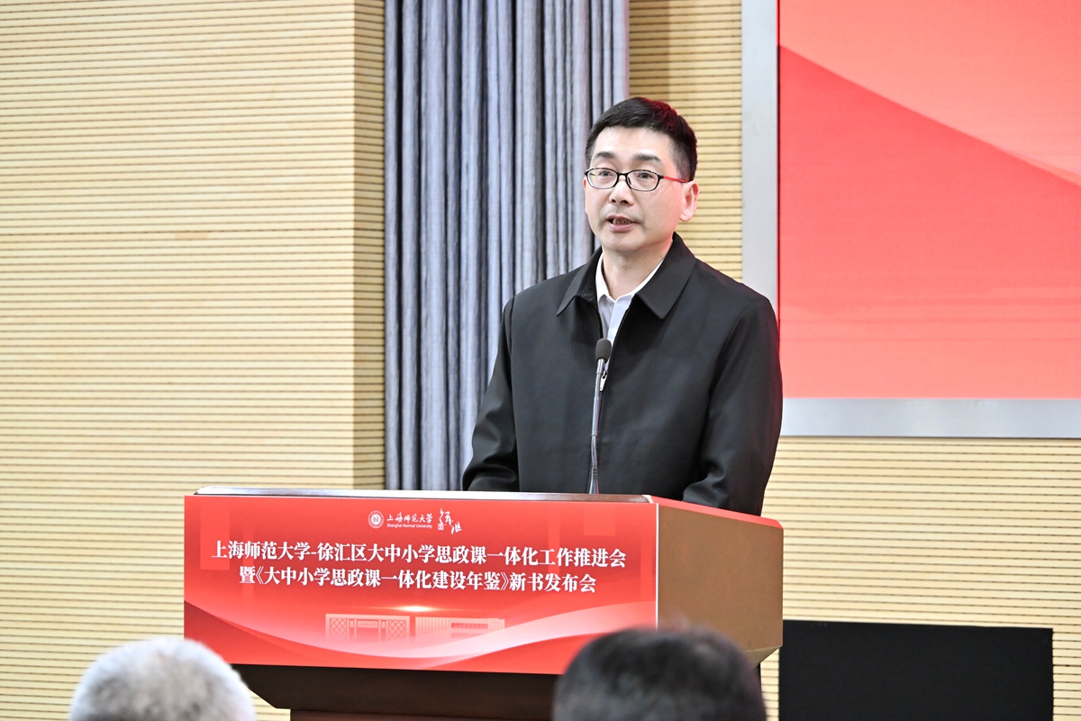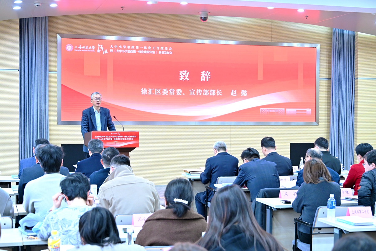 为实施新时代立德树人工程,贯彻落实好教育强国建设的“一号工程”,扎实推进学校立德树人机制综合改革试点高校工作,3月16日,上海师范大学-徐汇区大中小学思政课一体化工作推进会暨《大中小学思政课一体化建设年鉴》新书发布会,在学校西部校区会议中心二号报告厅举行。上海市教卫工作党委副书记顾红亮,校党委书记林在勇,徐汇区委常委、宣传部部长赵懿等领导出席会议并讲话。上海市教委德育处、徐汇区教育局、徐汇区教育学院、龙华烈士陵园、南京出版传媒集团、徐汇区中小学校、兄弟高校以及校党委宣传部、马克思主义学院师生代表等参加会议。会议由校党委副书记、副校长赵扬主持。