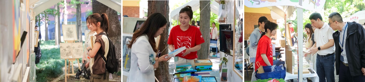 “艺术森林市集”延续往届传统,公益售卖收益的50%将捐赠至校教育发展基金会,专项用于美术学院学生培养,回应“以美育人、以文化人”的教育理念。 (供稿、摄影:美术学院) |