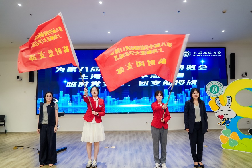 为进一步落实高校立德树人根本任务,探索“大思政课”实践育人新路径,今年我校再次成立进博会志愿者临时党支部、团支部,让党旗和团旗在志愿服务一线高高飘扬。组织部副部长夏洁和校团委书记黄雨艳为临时党支部、团支部授旗。