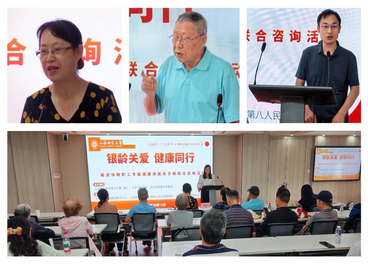 岁岁重阳,今又重阳。在重阳佳节即将来临之际,为积极响应国家积极老龄观,推进老年健康服务的号召,大力弘扬中华民族尊老爱老敬老爱老的传统美德,积极响应国家推进老年健康服务的政策号召,10月15日,上海师范大学离退休工作部(处)携手人文学院党委、语言智能应用实验室,联合上海第九人民医院听力中心、上海市第八人民医院社工部,共同举办了“银龄关爱 健康同行”上海师范大学离退休教职工专属健康讲座及多科联合咨询活动。活动启动仪式由人文学院党委副书记、副院长戚静主持,健康讲座及咨询环节由校离退休工作处副处长陈重来主持。