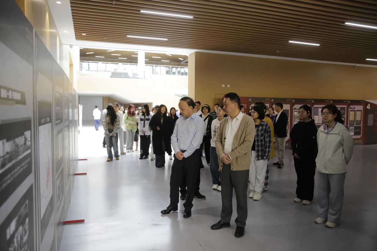 随后,在场师生怀着对历史的崇敬之心共同观看展览,循着展览“烽火淞沪、救亡图存、中流砥柱、胜利凯歌”四大篇章脉络,在泛黄的珍档原件与珍贵的历史影像间感受革命先辈不屈不挠、浴血奋战的伟大抗战精神。
